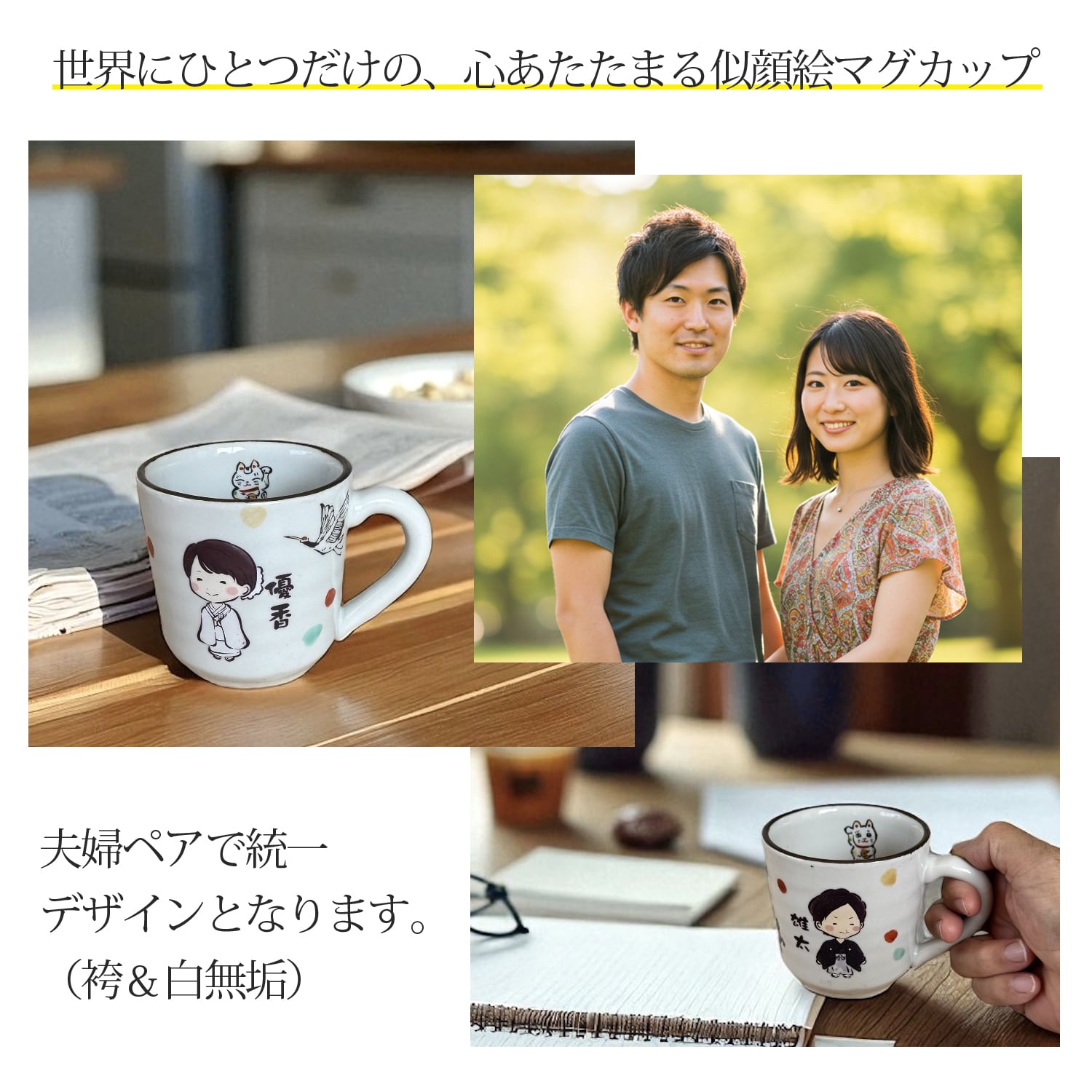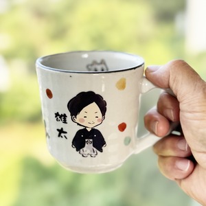 送っていただいた写真を元にデザイナーが似顔絵を描いたマグカップ