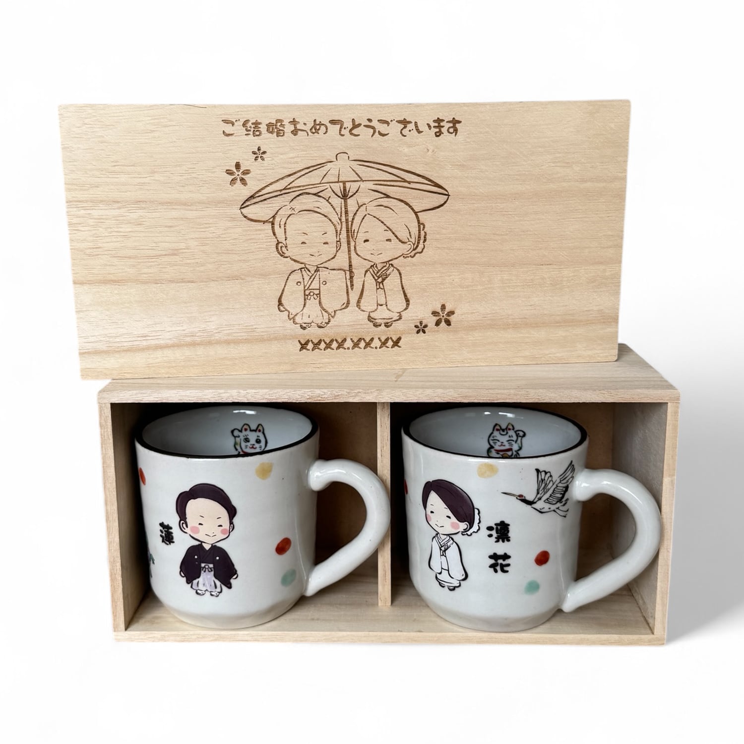 結婚祝い 名入れ プレゼント ギフト 似顔絵 結納夫婦 マグカップ(洋) | 名入れ 食器 陶器 かわいい おしゃれ マグ マグカップ ペア ペアギフト 名前入り 家族 男性 女性 お祝い 友人 新郎 新婦 ki159