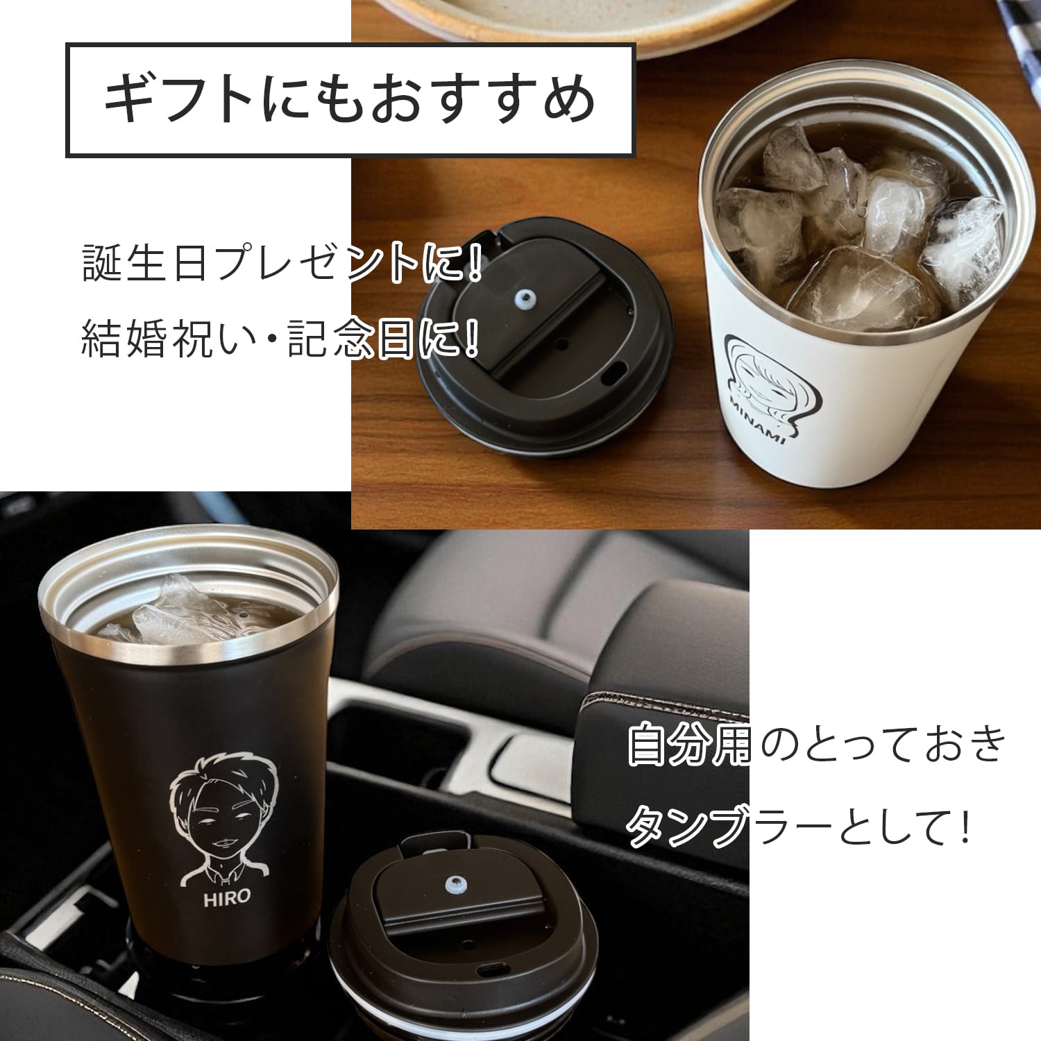 名入れ プレゼント タンブラー ギフト 黒フタ付き ゆるかわ 似顔絵 レーザー ステンレスタンブラー (単品/ペア)(洋)最速 | 名入れタンブラー 結婚祝い 名前入り 保温 冷温 誕生日 還暦祝い 父 母 男性 女性 ki160