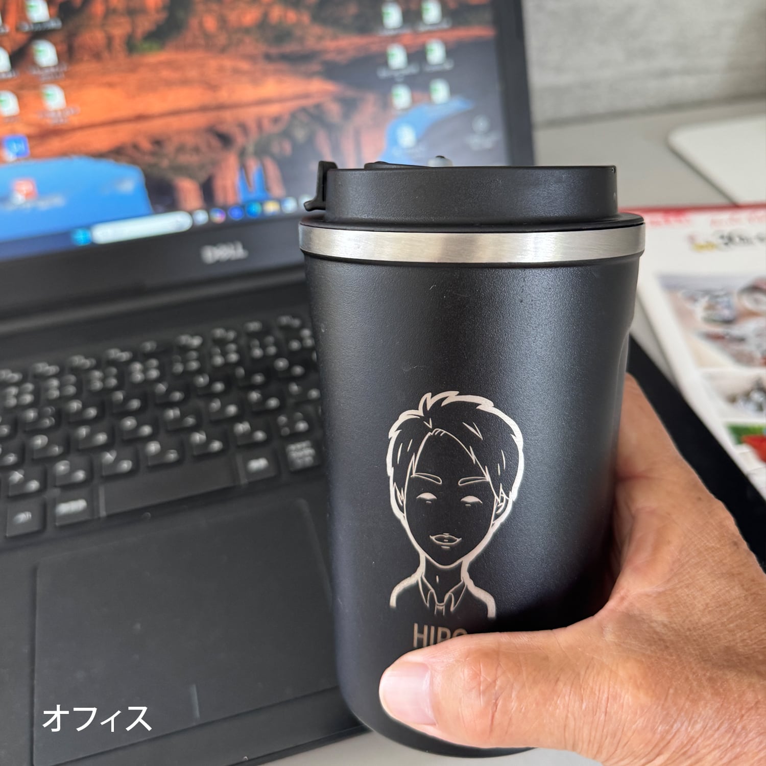 送っていただいた写真を元にデザイナーが描いた似顔絵を彫刻したステンレスタンブラー