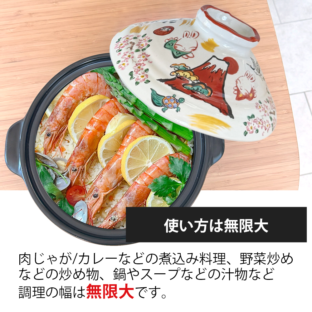 土鍋 富士めでたい三昧 鍋 8号 土鍋 IHプレート付き 超最速 プレゼント ギフト おしゃれ 贈り物 ガス IH対応 超最速 (和) 炊飯 ご飯 土鍋 ご飯炊き土鍋 ih対応 日本製 入籍祝い 還暦祝い 新生活 内祝い 結婚祝い 新築祝い