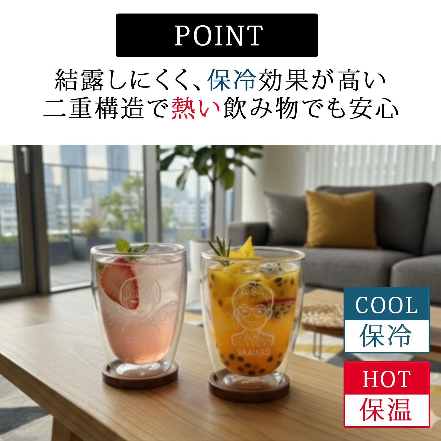 似顔絵 プレゼント ダブルウォールグラス かわいい 名入れ グラス 写真入り ギフト ゆるかわ 似顔絵 ダブルウォール グラス xt009 (単品) | 結婚祝い 名前入り 保温 冷温 誕生日 おしゃれ 結婚 記念日 男性 女性 友人