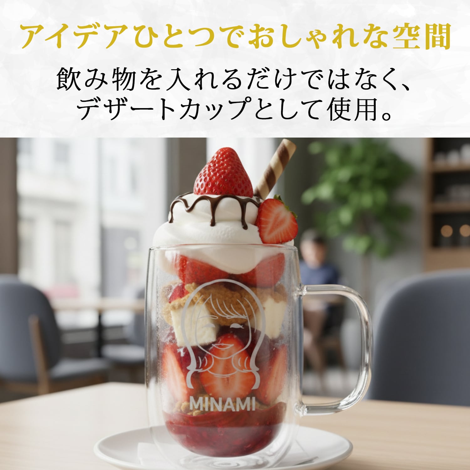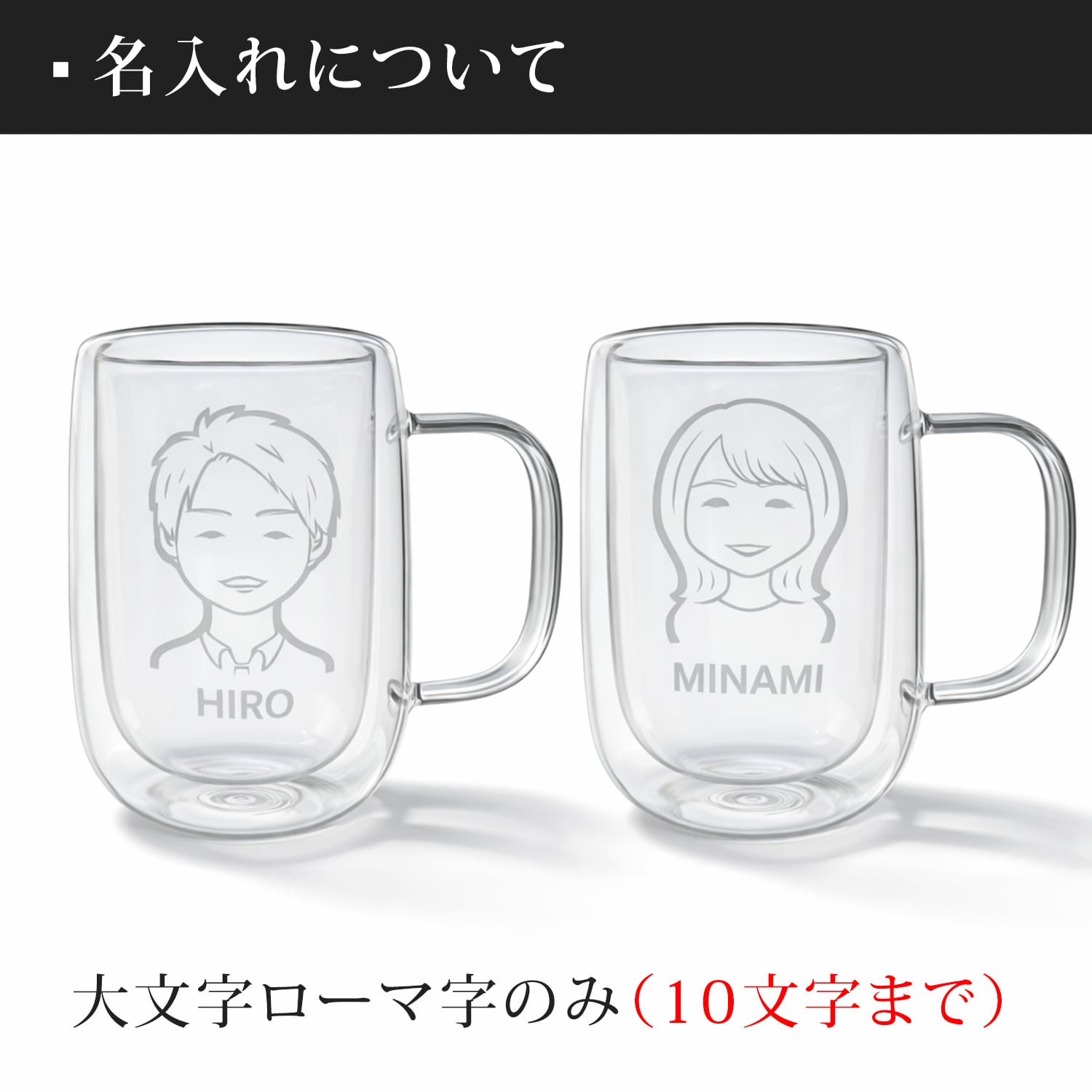 似顔絵 プレゼント ダブルウォールマググラス かわいい 名入れ グラス 写真入り ギフト ゆるかわ 似顔絵 ダブルウォール マグカップ xt008 (単品) | 結婚祝い 名前入り 保温 冷温 誕生日 おしゃれ 結婚 記念日 男性 女性 友人