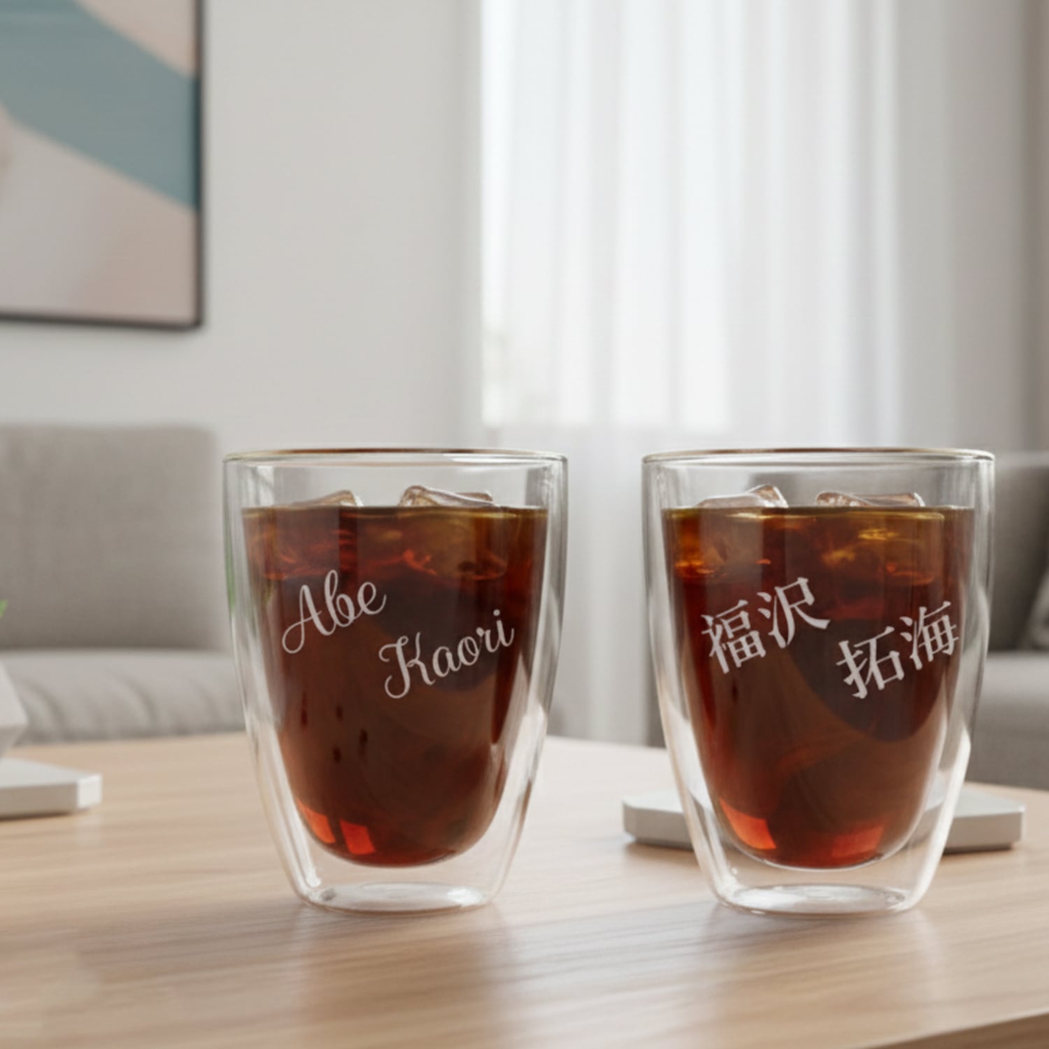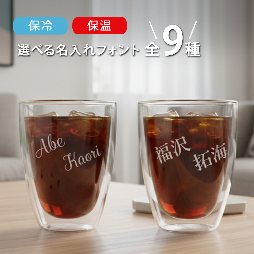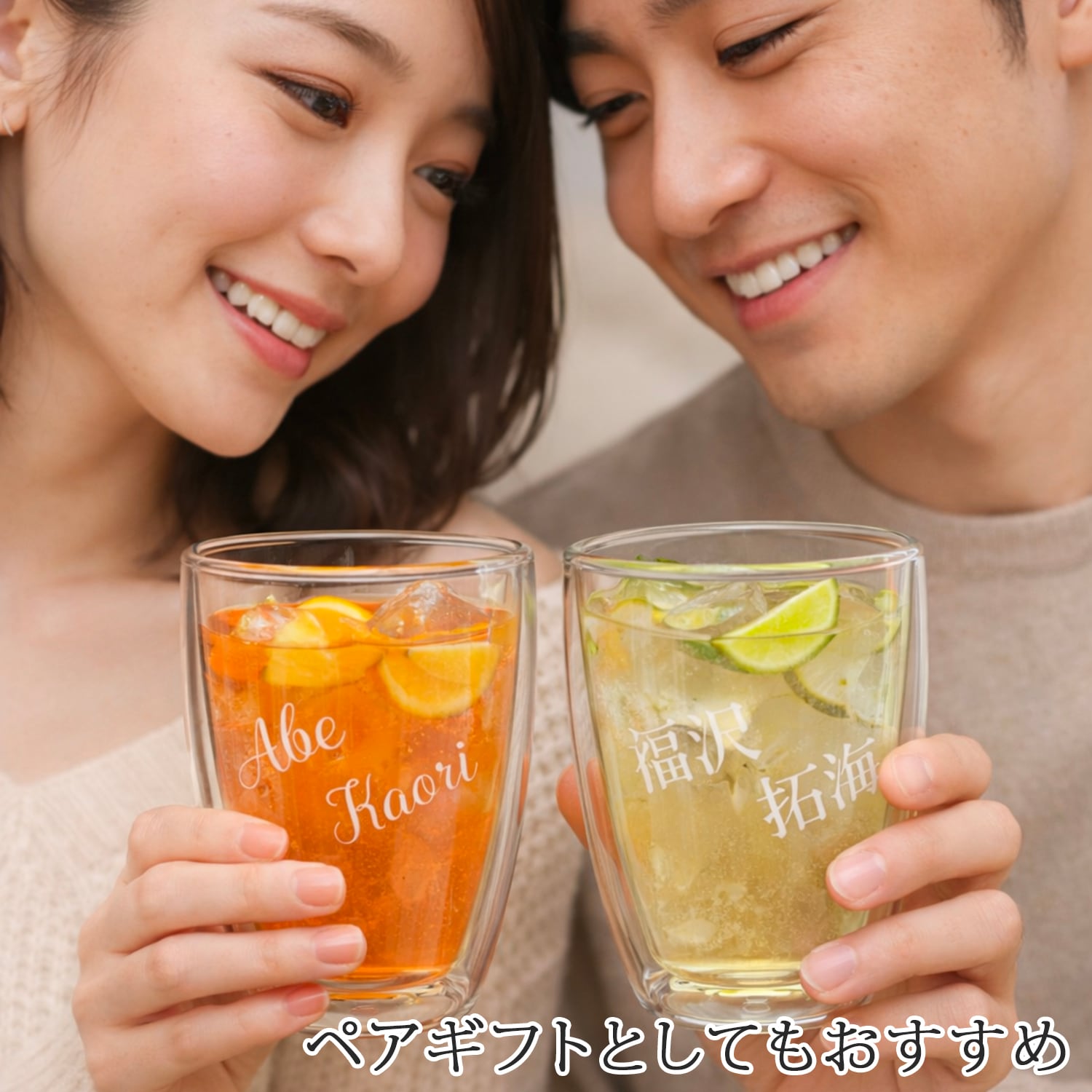 ダブルウォールグラス かわいい 名入れ プレゼント グラス ギフト 選べるフォント全9種 スラッシュ名入れ ダブルウォール レーザー (単品) xt006 最速 | 結婚祝い 名前入り 保温 冷温 誕生日 おしゃれ 結婚 記念日 男性 女性 友人