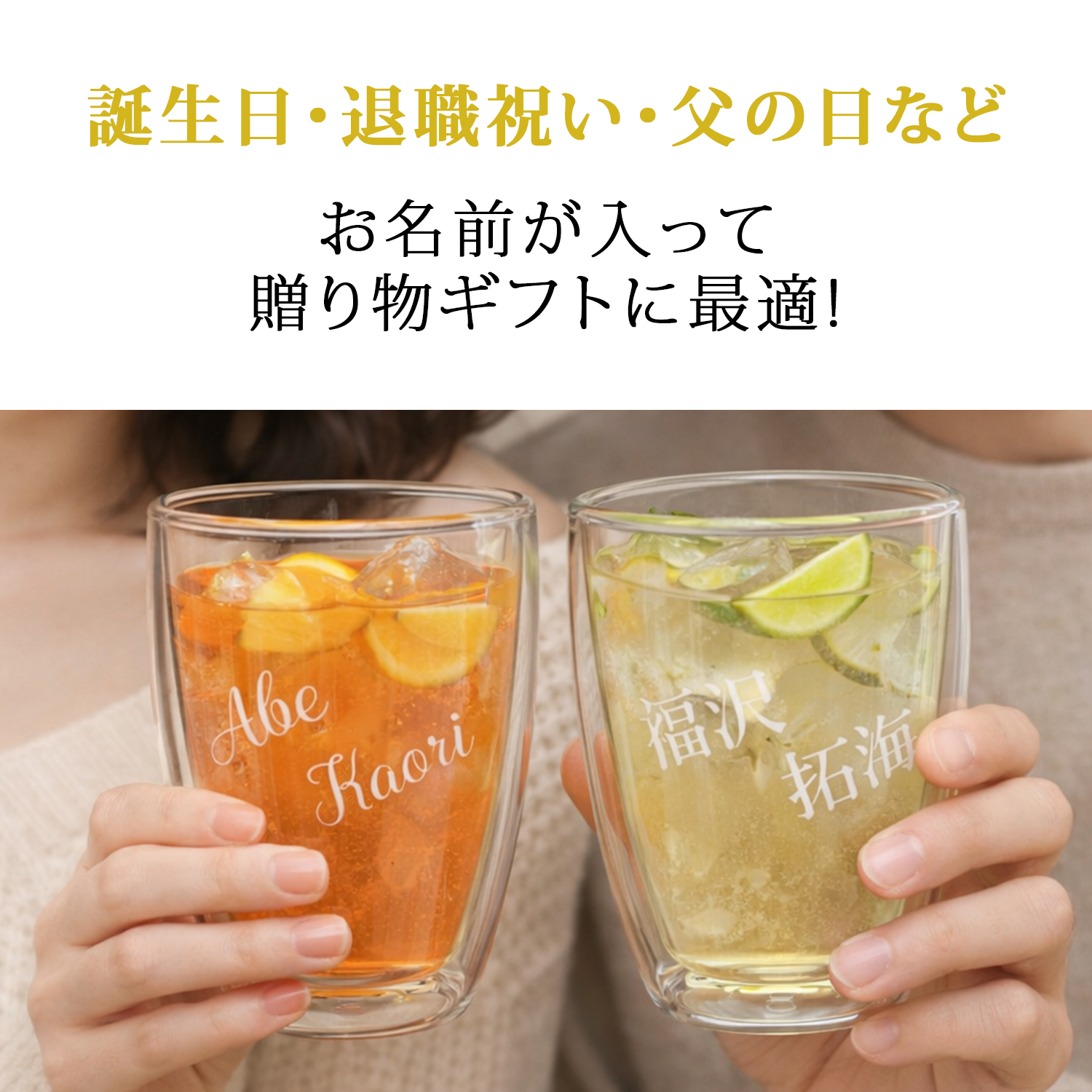 ダブルウォールグラス かわいい 名入れ プレゼント グラス ギフト 選べるフォント全9種 スラッシュ名入れ ダブルウォール レーザー (ペア) xt006-p 最速 | 結婚祝い 名前入り 保温 冷温 誕生日 おしゃれ 結婚 記念日 男性 女性 友人