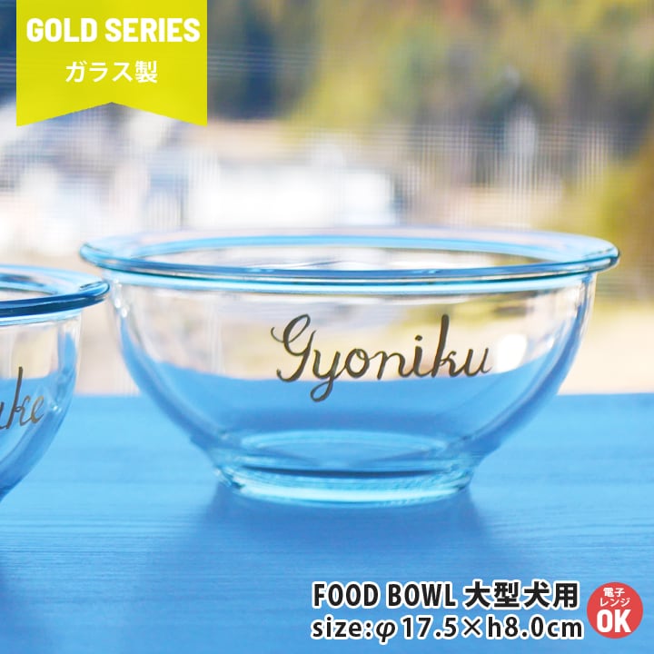 送料無料 名入れ ゴールド 直径17cm 大型犬専用 ガラス製大型フードボウル 超最速 | フードボウル 犬 猫 ペット 食器 陶器 日本製 おしゃれ かわいい 餌入れ 餌皿 水飲み 給水器 皿 犬用 猫用 食器 大型犬 PET160