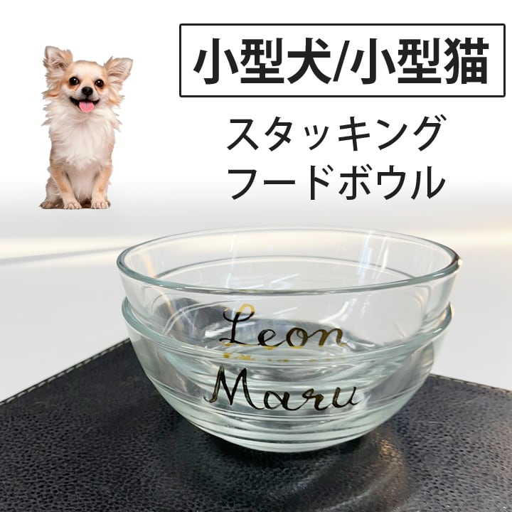 送料無料 名入れ ゴールド 小型犬 猫 専用 ガラス製スタッキングフードボウル 超最速 | フードボウル 犬 猫 ペット 食器 陶器 日本製 おしゃれ かわいい 餌入れ 餌皿 水飲み 給水器 皿 犬用 猫用 食器 PET162