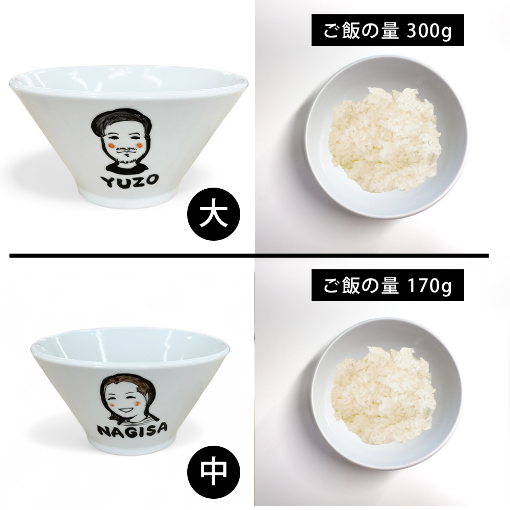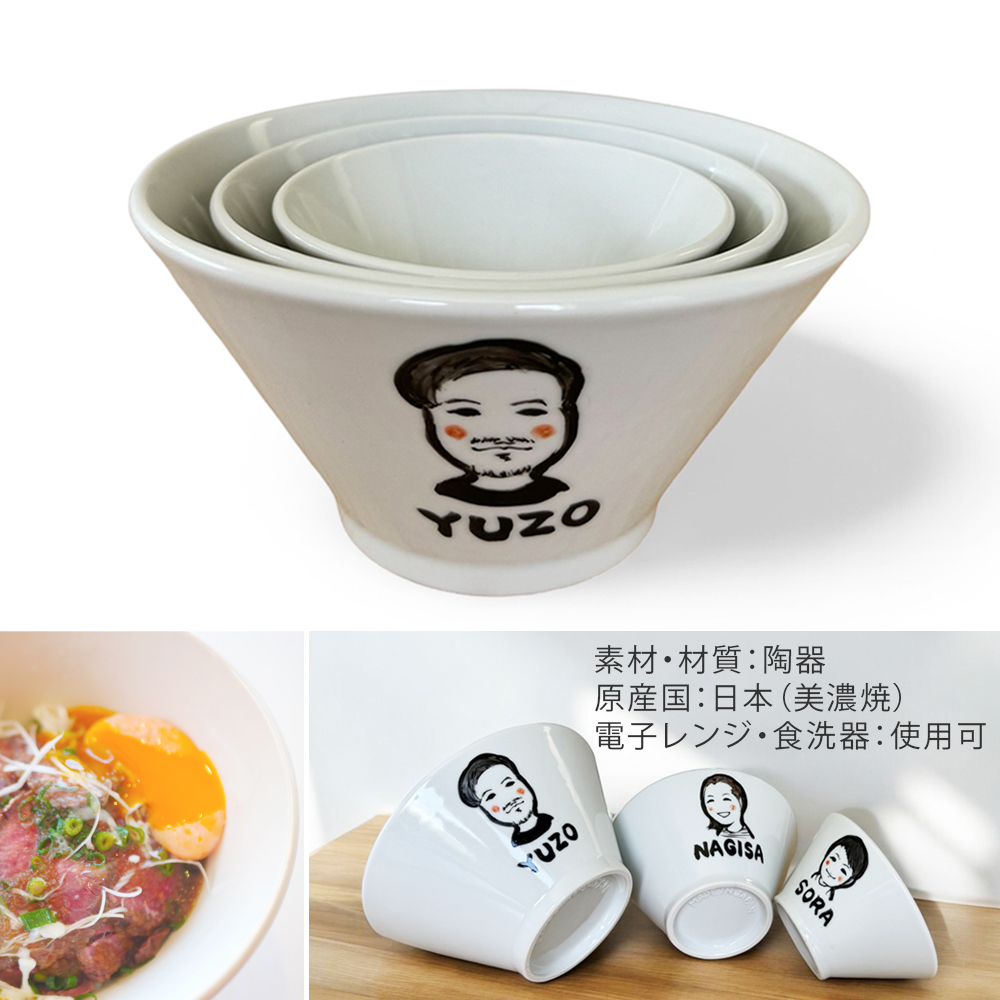 送っていただいた写真を元にデザイナーが似顔絵を描いたどんぶり