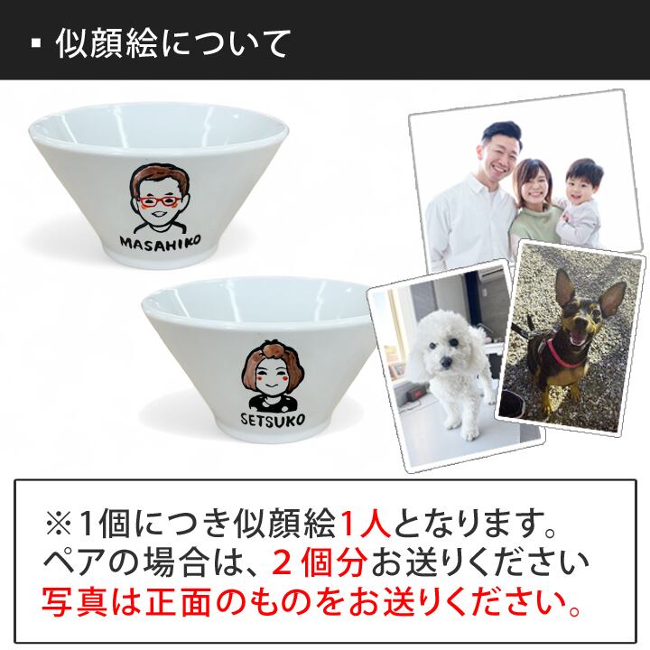 送っていただいた写真を元にデザイナーが似顔絵を描いたどんぶり